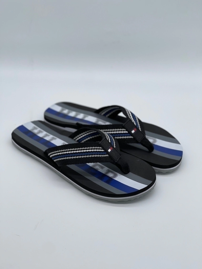 CHINELO TOMMY HILFIGER BONDI 12D - LISTRADO PRETO/AZUL/CINZA/BRANCO