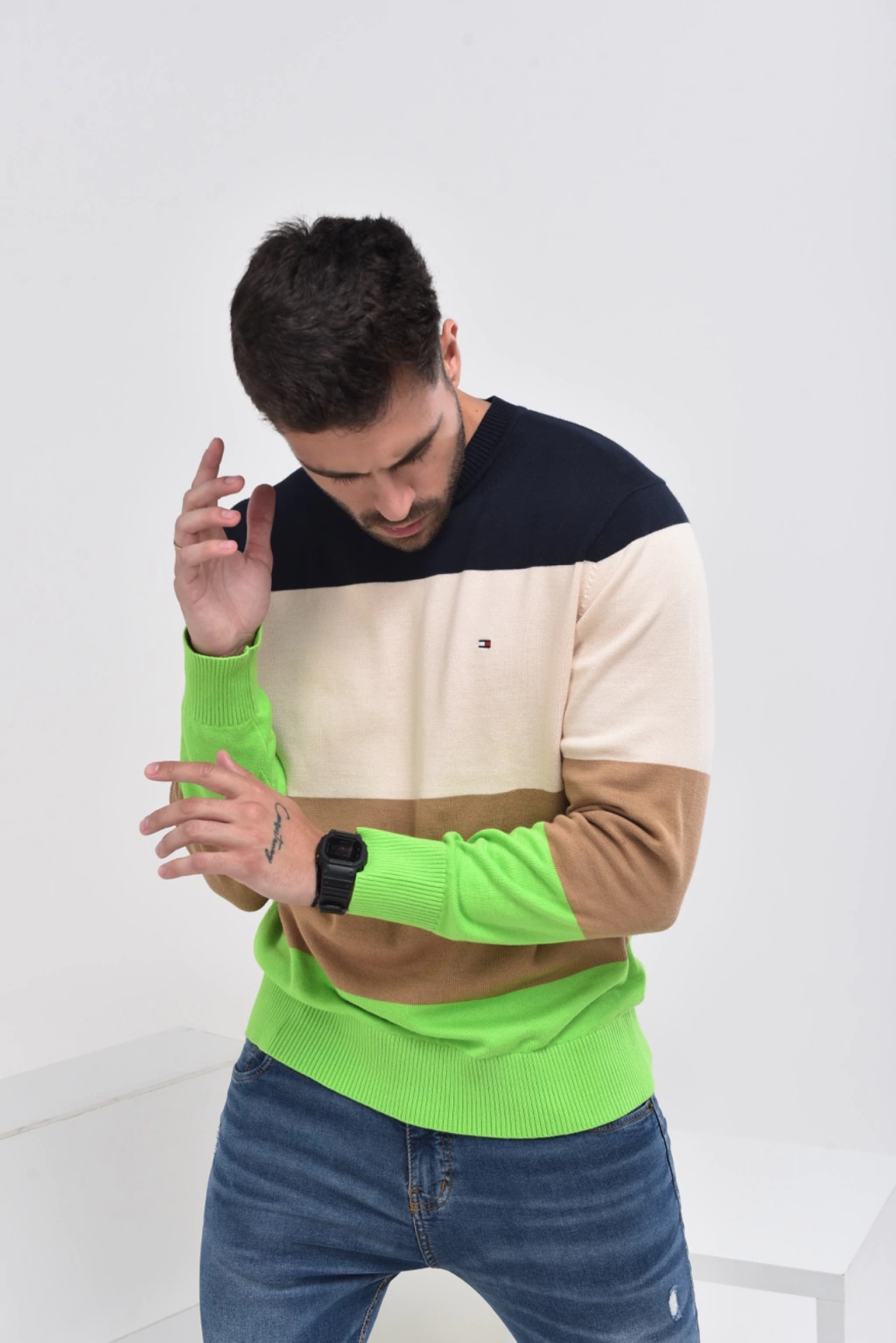 SUETER TOMMY HILFIGER SPRING COLOURBLOCK - AZUL MARINHO/ BEGE/ VERDE